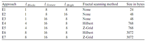 To extract texture information, CEDD uses a fuzzy version of the five digital filters proposed by the MPEG-7 EHD, forming 6 texture areas. CoMo descriptor uses Hu moment to capture the texture information forming again, 6 texture areas. On the other hand, FCTH uses the high-frequency bands of the Haar wavelet Transform into a fuzzy system, to form 8 texture areas.
